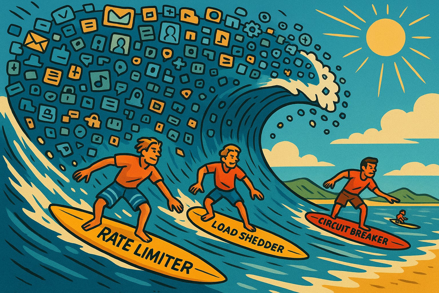 These control how fast requests come in. Think of it as metering traffic before it hits your service. Simple, effective, but often too blunt when load is unpredictable.Load Shedders: