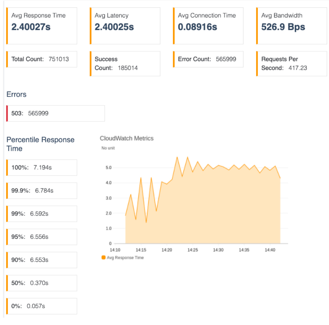 In our case, a heavier load (50x50 virtual users) exposed a new failure mode: latency graphs began to oscillate every four minutes.